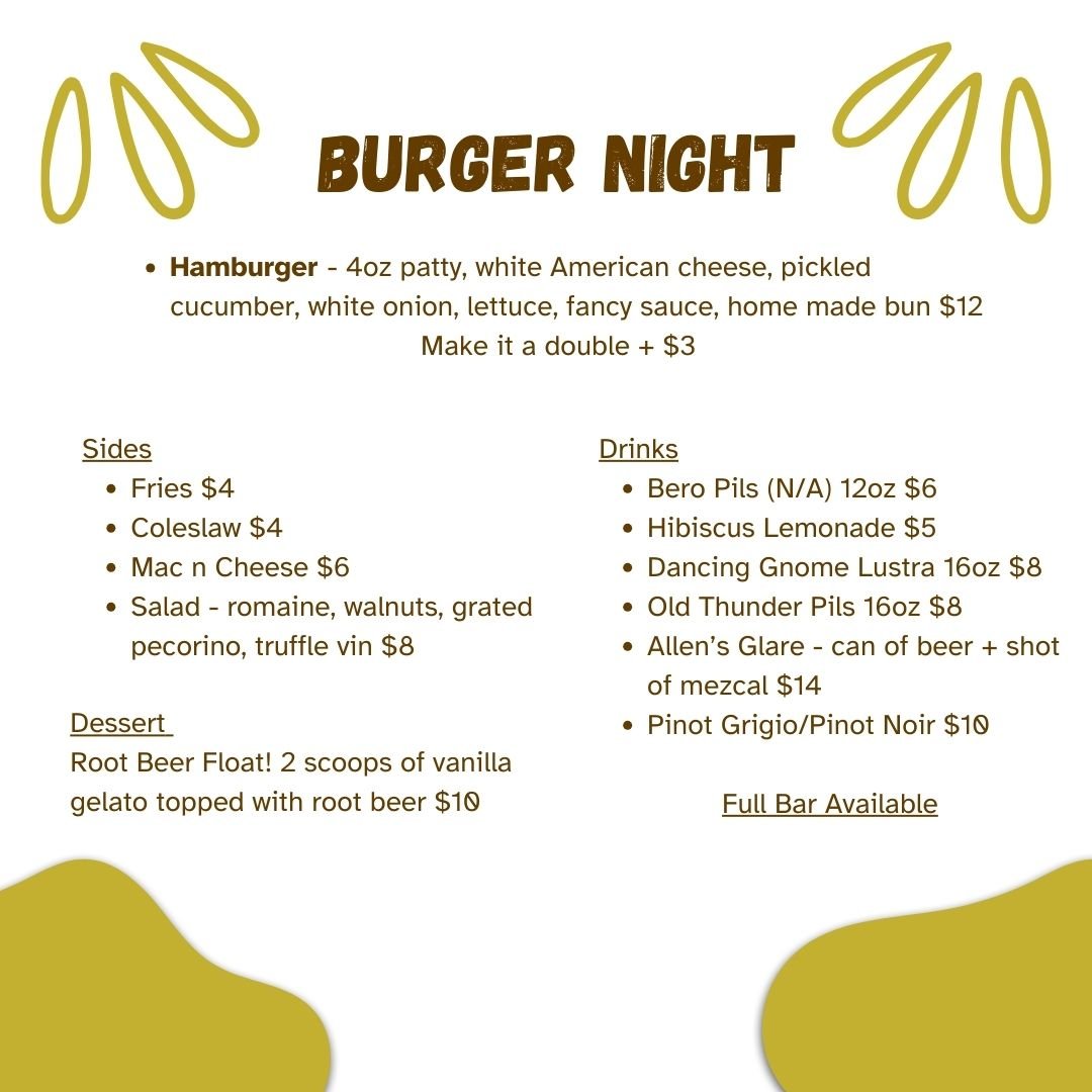 We’ve been hosting Mangia Monday for over a year now and we wanted to flex a different muscle for the upcoming March Mangia date. So, on Monday, March 23rd at 5:30pm we'd love it if you would join us for Burger Night!